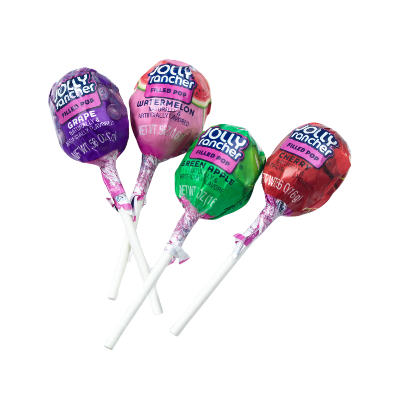 - The manufacturer of Filled Pops, Cherry, Green Apple, Watermelon, Grape is Jolly Rancher.