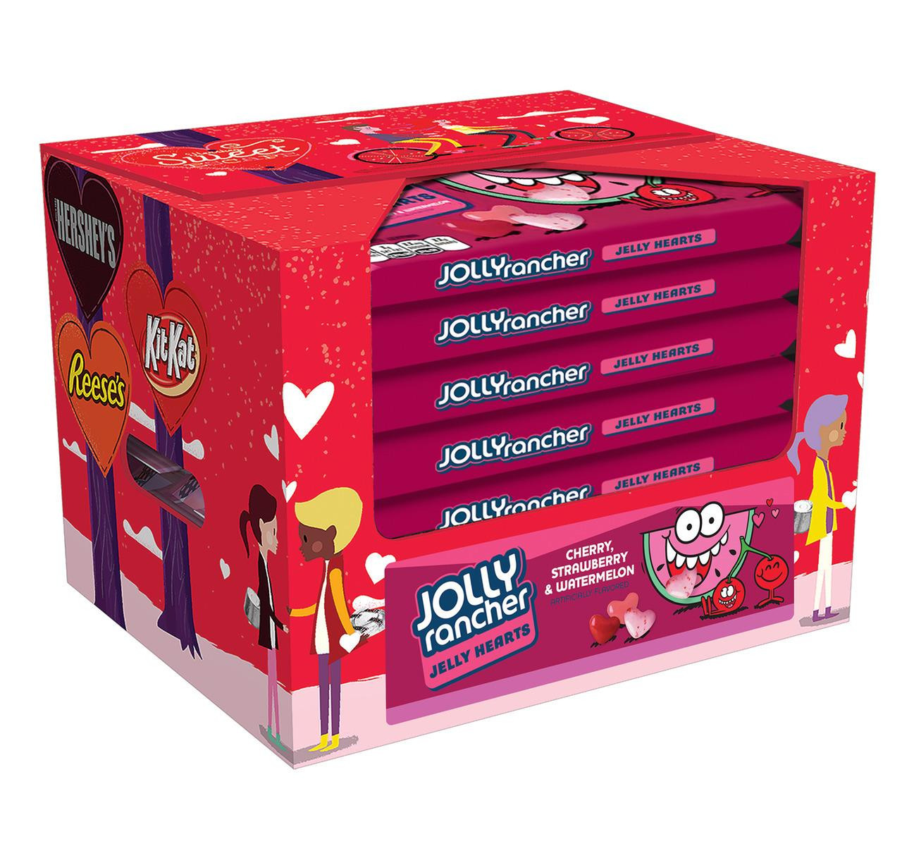 Don't let their small size fool you โ JOLLY RANCHER jelly hearts are jam-packed with bold fruit flavor. Show your taste buds the love this season with delicious cherry, strawberry and watermelon heart-shaped jelly beans in white, pink and red colors perfect for Valentine's Day. These colorful, themed treats make the perfect Valentine's Day decorations for people to snack on throughout the season. Whether you plan to prepare a snack selection at work, fill a covered home candy dish or make your own party favors and Valentine's Day presents for your nearest and dearest, you can't go wrong with the delicious, fruity taste of JOLLY RANCHER jelly bean hearts. Preparing for a romantic movie night with a special someone? Hoping to get the whole family or office together for a fun comedy film? Bring a bag of fat-free jelly hearts along with you to set the tone of the night and give everyone in attendance a fun, chewy snack to munch on. Just don't forget to indulge in some of these delightfully tasty treats yourself to experience flavors even Cupid would show up for!