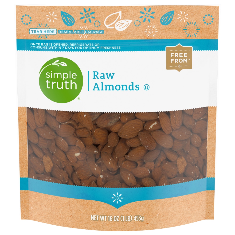 Simple Truth® Raw Almonds will satisfy your hunger cravings. Non-GMO with no preservatives, they're a great treat right out of the bag. Or try seasoning and roasting them for added flavor. These almonds are a great snack any time. Simple Truth® is Free From Unwanted.