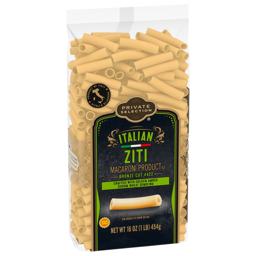 Private Selection® Italian Ziti is crafted with durum wheat semolina and slow dried for a consistent flavor, golden color and coarse texture that holds sauce well.