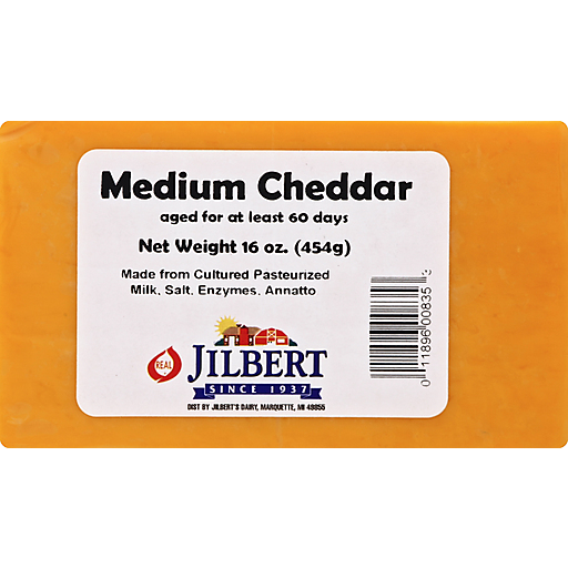 - The UPC barcode for Jilbert, Medium Cheddar is 011896008353.