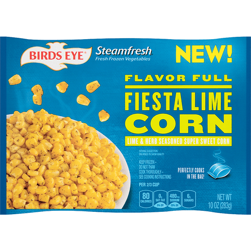 - The product category for Birds Eye, Fiesta Lime Corn is Frozen Vegetables.
