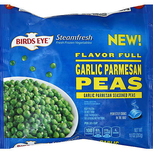 - The manufacturer of Garlic Parmesan Peas, Garlic Parmesan is Birds Eye.