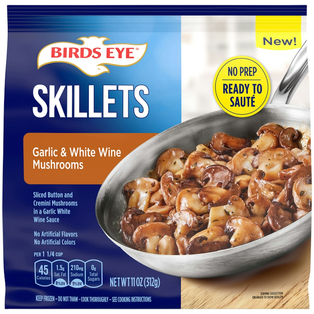 - The manufacturer of Garlic & White Wine Mushrooms Skillets, Garlic & White Wine Mushrooms is Birds Eye.