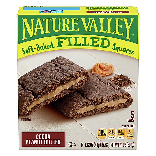 a perfect combination of creamy peanut butter and whole grain wheat and oats. nature valley soft-baked filled squares have a unique texture of whole grain wheat and oats combined with a creamy peanut butter filling for a delicious snack to help keep you full. our recipe includes no artificial flavors, colors or high fructose corn syrup.