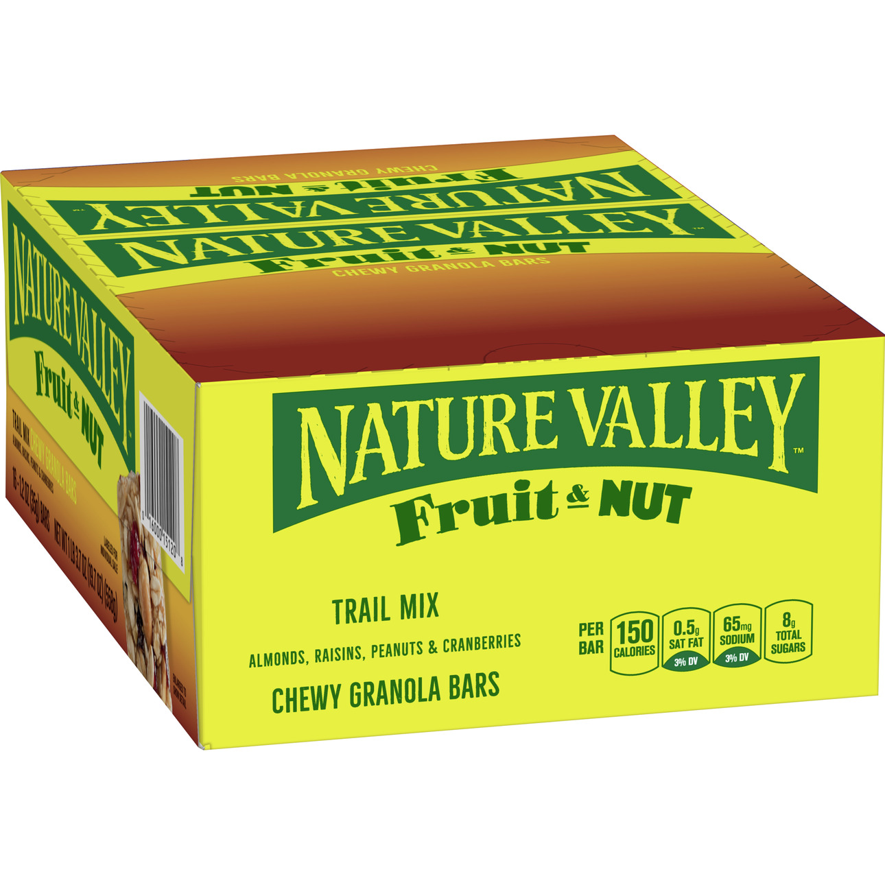 The Nature Valley Trail Mix Fruit and Nut Bar makes for a nutritious and tasty snack. It is a combination of 100 percent whole grain oats with savory almonds, peanuts, raisins, and dried cranberries. With no trans fat or cholesterol, this chewy granola..