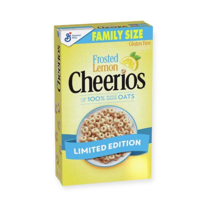 Inspired by the taste of lemon, Frosted Lemon Cheerios are a bowl of Gluten Free fruity fun. With no Artificial Flavors or Colors from Artificial Sources, and Whole Grain oats, the fun is that much sweeter for everyone.