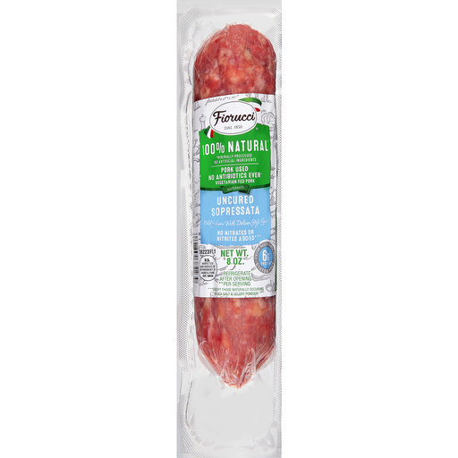 - The manufacturer of Uncured Sopressata Mild Salami with Italian Style Spices, Uncured Sopressata is Fiorucci.