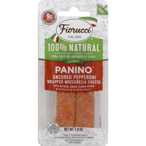- The manufacturer of Uncured Pepperoni Wrapped Mozzarella Cheese Panino, Uncured Pepperoni Wrapped Mozzarella Cheese is Fiorucci.