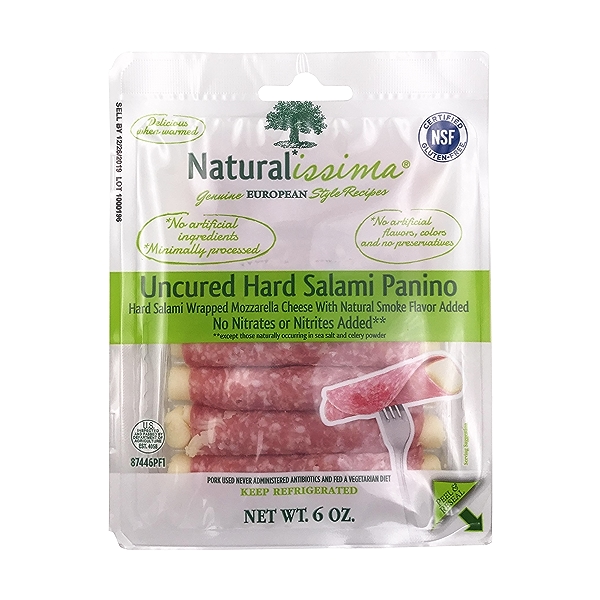 - The manufacturer of Uncured Hard Salami Wrapped Mozzarella Cheese Panino, Uncured Hard Salami is Naturalissima.