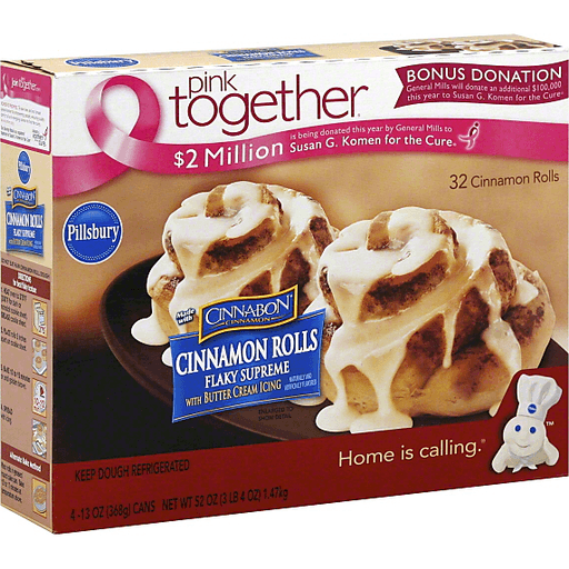 32 cinnamon rolls. Made with Cinnabon cinnamon. Naturally and artificially flavored. Home is calling.