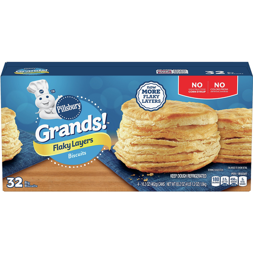 Make breakfast grand with the home-baked goodness of Pillsbury Grands! Flaky Layers Butter Tastin’ Biscuits. Big, fluffy, and fresh from the oven, every bite will remind you of that home-cooked feeling you love. Plus, they have 0 grams of trans fat.