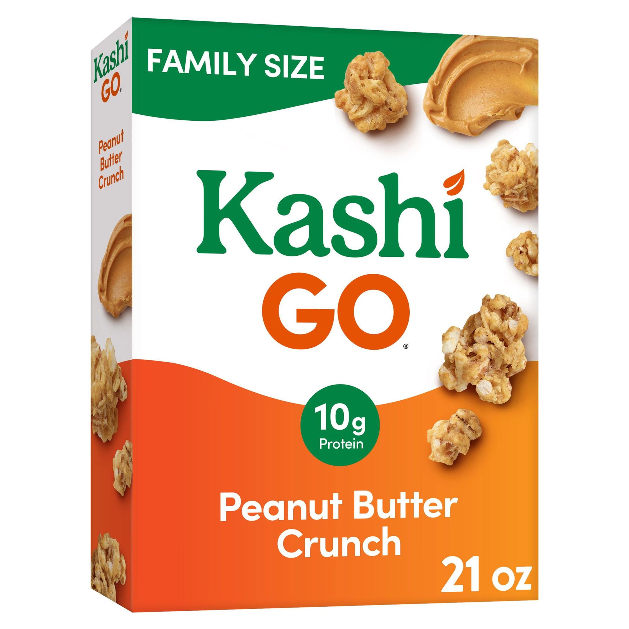 Treat yourself to multigrain clusters bursting with peanut buttery goodness in every bite of Kashi GO Peanut Butter Crunch Cereal. Whether it’s starting the morning with a quick breakfast or enjoying as a midday snack Kashi GO Breakfast Cereal delivers big peanut butter flavor ready to please. Both vegan and Non-GMO Project Verified each wholesome serving has 10g protein and 8g fiber; Kashi GO Cereal is the ideal way to power your day. Enjoy with your favorite milk or pair with fruit or yogurt for a delicious morning. For a portable snack pack reusable baggies of Kashi GO Peanut Butter Crunch into your purse lunch box or gym bag. Kashi GO Peanut Butter Crunch Cereal also makes a great after dinner treat by the handful or as an ice cream topping. Anytime is the right time for Kashi GO.