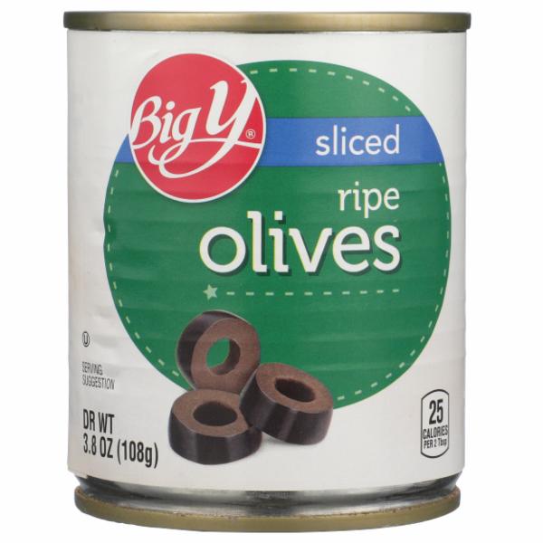 Sliced Ripe Olives is manufactured by Big Y Foods, Inc. with a suggested serving size of 2 Tbsp (16 G) and has 25 calories per serving.