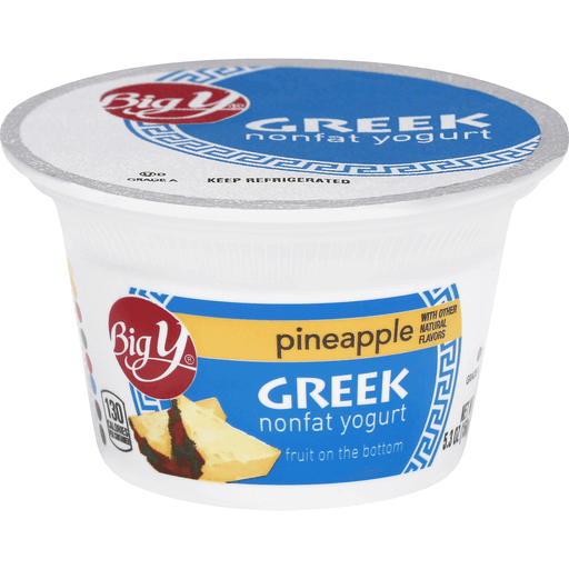 - The manufacturer of Pineapple Fruit on the Bottom Greek Nonfat Yogurt, Pineapple is Big Y.