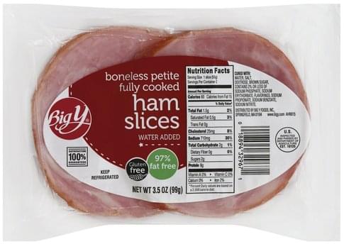 - The manufacturer of Boneless Petite Ham Slices is Big Y.