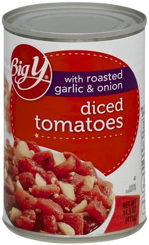- The manufacturer of Diced Tomatoes with Roasted Garlic & Onion, Roasted Garlic & Onion is Big Y.