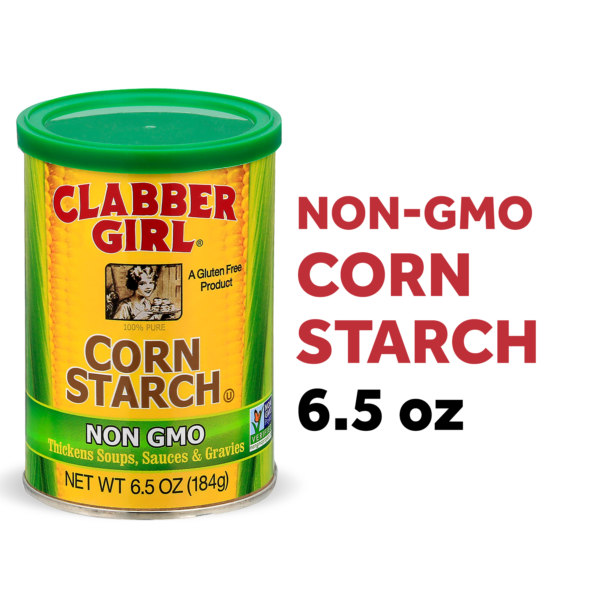 Clabber Girl Corn Starch is made from Non-GMO low moisture corn. Clabber Girl corn starch can be used as a binder or thickener in place of flour for sauces, fillings, soups and gravies. All natural, gluten free and has twice the thickening ability of flour, if your recipe calls for flour, replace with half as much corn starch.