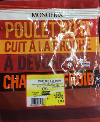 - The manufacturer of Poulet Rôti Cuit À La Broche is Monoprix.