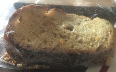 Eau, Farine Da Mais 31% (Farine At Tlocons Da Mais, Farine De Blé, Feves De Soja» Graina De Tournesol, Dextrose, Gluten De Ble, 301, Levain De Ble, Arome, Colorant: E 160R, Emulsifiant: E472E, Antioxydant:Aclde Ascorbique E300, Enzyma (Ble) Amylase, Enzyma (Ble) : Xylanasa), Farine Tradition (Farine De Ble Malté, Gluten De Ble, Anzyma Amylacas D'Aspergilluc), Lavure Contient : Gluten, Soja