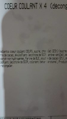 44400 Reze Coeur Coulrnt X 4 (Décongelé Tteur Coulant Coeijfs, Sucre, Chr (Sucre, Pâte D Ne De Cacao, Ê,Qulsiîiant: Lecithine De Sof Arbme Vanille), Eau, )Prah Non Hydrogènee, Farine De Ble, Poudi De Cacao Ë'/,), Poudre ;Ifiant: Lécithine De Sojb, Colorant: Beta - ' Arotene), Produit Décong Setongeler.