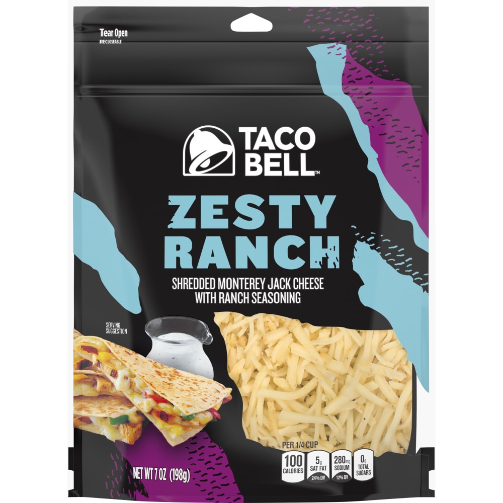 - The manufacturer of Zesty Ranch Shredded Monterey Jack Cheese with Ranch Seasoning, Zesty Ranch is Taco Bell.
