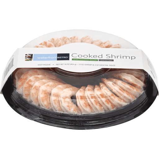 - The manufacturer of Cooked, Peeled & Deveined Shrimp Cocktail with Sauce is Waterfront Bistro.
