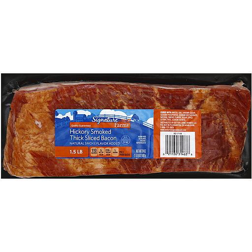 - The manufacturer of Thick Cut Hickory Smoked Bacon, Hickory Smoked is Signature Select.