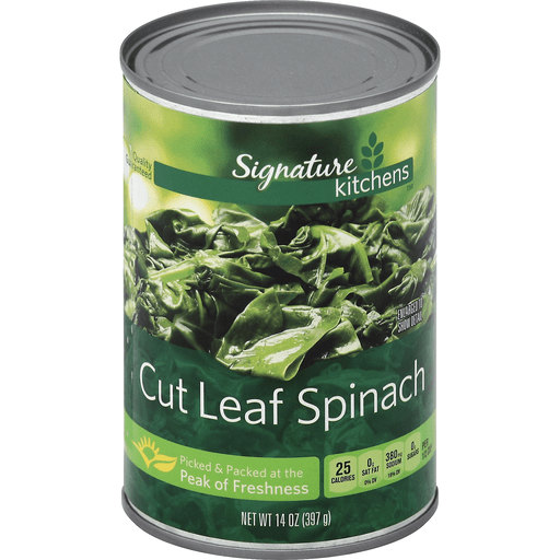 - The manufacturer of Cut Leaf Spinach is Signature.