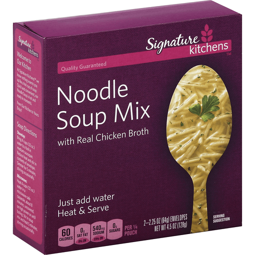 - The manufacturer of Dry Noodle Soup Mix with Chicken Broth, Dry Noodle with Chicken Broth is Signature.
