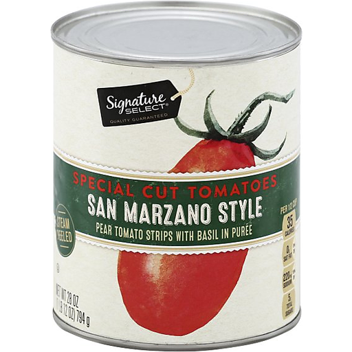 - The manufacturer of San Marzano Style Special Cut Tomatoes Pear Tomato Strips with Basil in Puree, San Marzano Style is Signature.