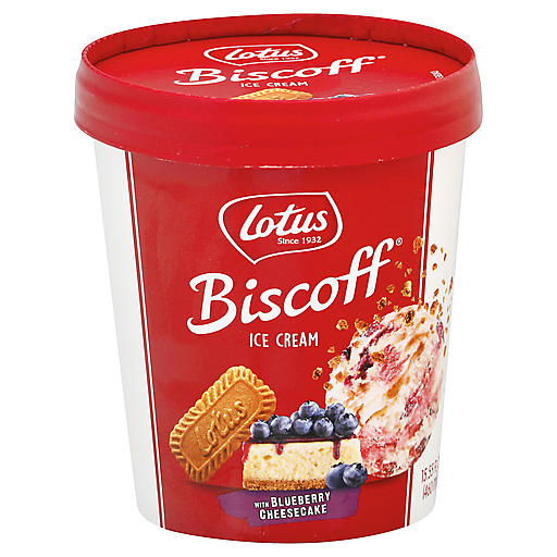 Biscoff ice cream with blueberry cheesecake and crunchy Lotus Biscoff cookies. Non-GMO. Since 1932.