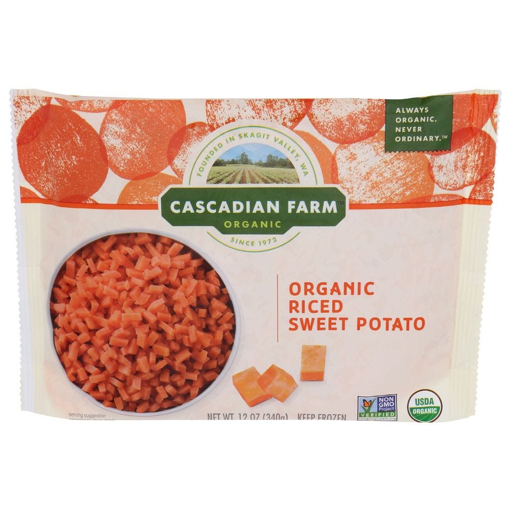 - The manufacturer of Organic Riced Sweet Potato is Cascadian Farm.