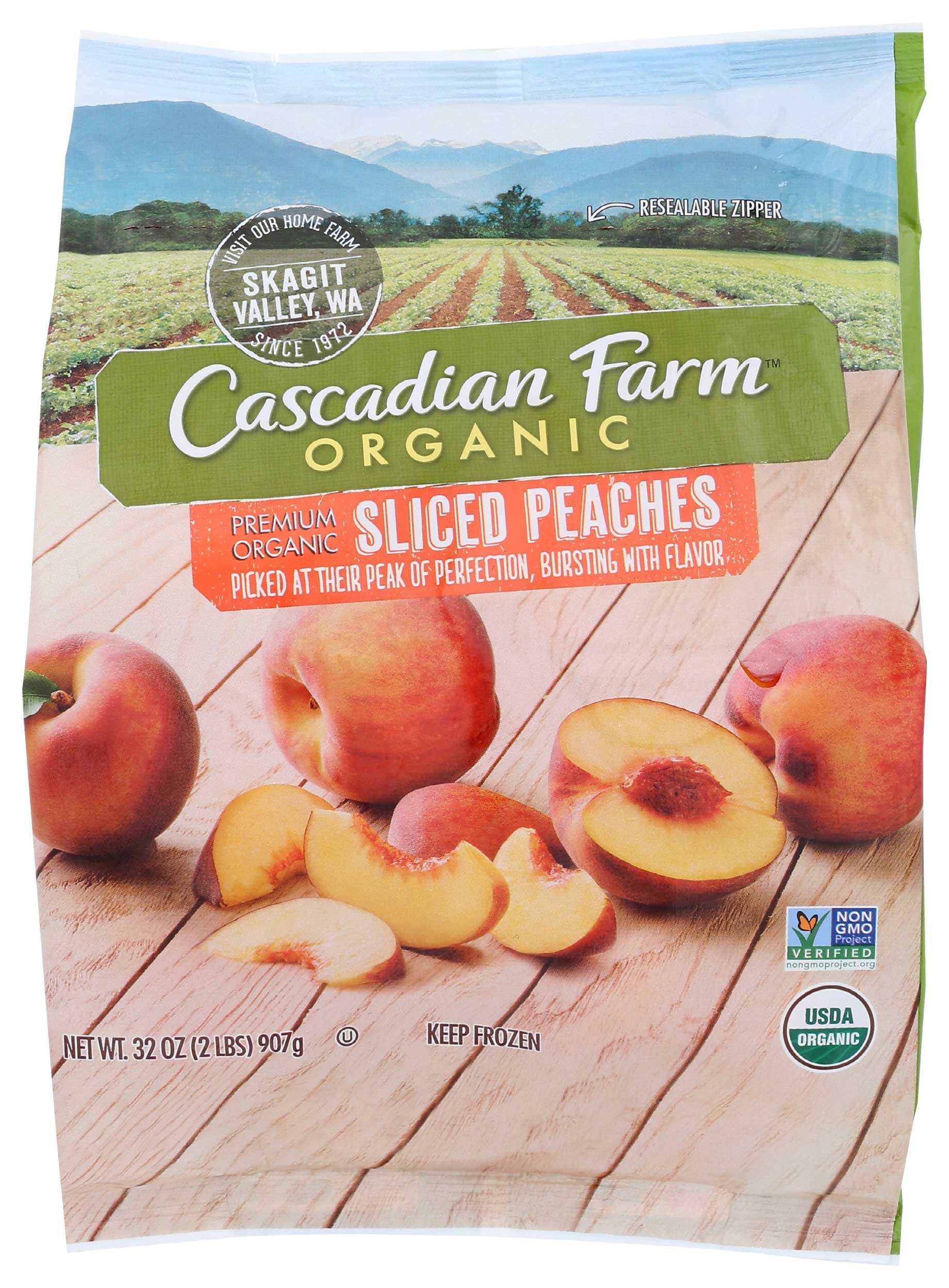 - The manufacturer of Premium Organic Sliced Peaches is Cascadian Farm.