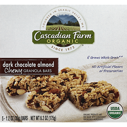 - The manufacturer of Chewy Granola Bars, Dark Chocolate Almond is Cascadian Farm.