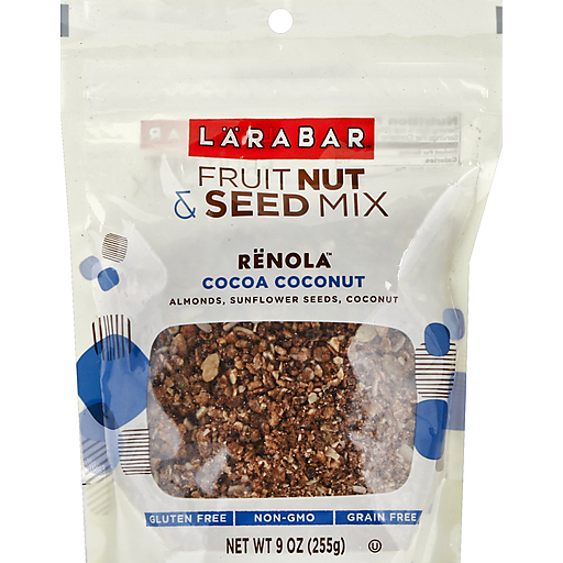Almonds, sunflower seeds, coconut. Gluten free. Non-GMO. Grain free. At Larabar, we delight in creating delicious flavors from just a few carefully chosen ingredients. It's no different with our mixed nuts, fruit, and seeds. Grain free and gluten free, Renola strikes a perfect balance between granola and trail mix. Add it on, mix it in or eat it on the go. Simple. Pure. Delicious. - Lara, Creator of Larabar. Snack of all trades, master of yum. Pour it in your hand. Add it on your yogurt. Mix it with your milk. Soy free. Dairy free.