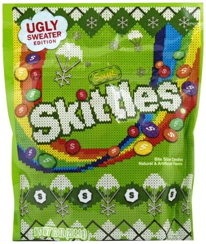The holidays are here! It's time to scout out Secret Santa gifts, stock up on stocking stuffers, and celebrate the gift-giving season with the ones you love. The gift of candy is a timeless classic and is sure to bring cheer to your friends and family. And so will the package the candy comes in because it helps you find your elf name. Santa's helpers really do exist when you reach into the bag and pull out two candies to uncover the secret code! Plus, the sour fruity flavors packed into every bite-size Skittles candy will fill even the biggest Bah Humbug with joy. Give and receive a taste of the rainbow this holiday season.