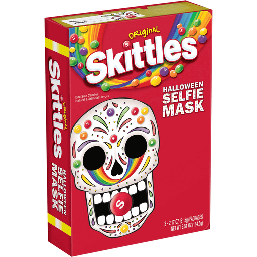 Trick or treat! It's almost that time of year again, when all the neighborhood ghosts and ghoulies start haunting your doorstep. It's time for parties and costumes, haunted houses and scary movies. But, most of all, it's time for Halloween candy and a selfie mask. This Skittles Candy Box features Original flavors. So prepare your home for the Halloween fun to come by stocking up on your favorite candy treats.