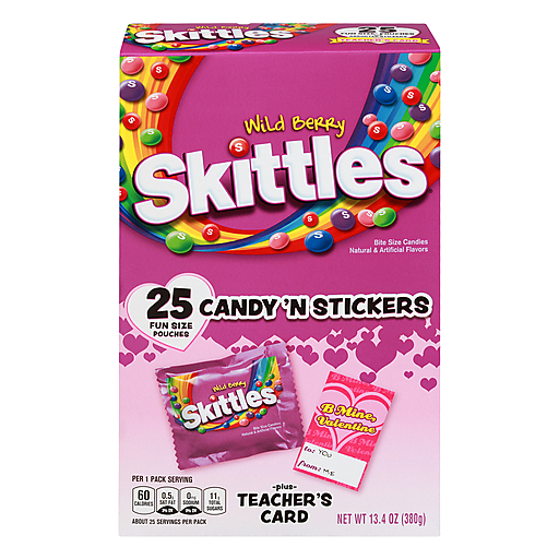 Are you looking for a unique way to share your love this Valentine's Day? SKITTLES Candy Valentines are a delicious candy treat that you can use to show your friends, family and coworkers how much you care. With each bag containing 25 fun size pouches of SKITTLES WIld Berry Candy, all you'll need to decide is who receives a valentine from you.