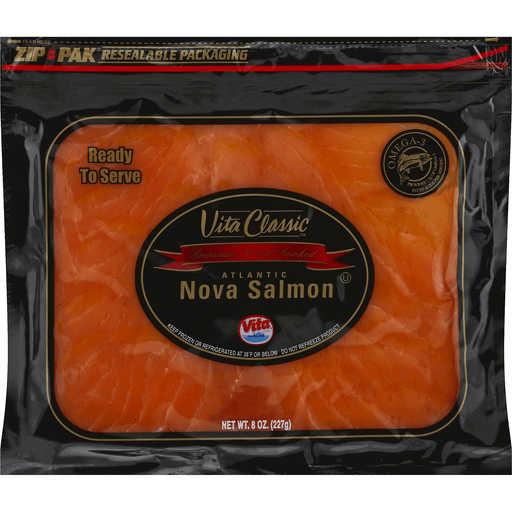 Providing quality seafood since 1898. Enjoy the premium mild flavor of Vita Classic's delicately smoked nova salmon. Sliced for your convenience. We've included one of our favorite recipe suggestions.