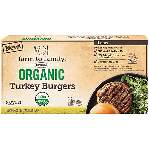 - The manufacturer of Turkey Organic Burgers Patties, Turkey is Butterball.