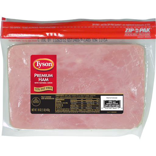 - The UPC barcode for Tyson, Premium Ham is 023700042712.