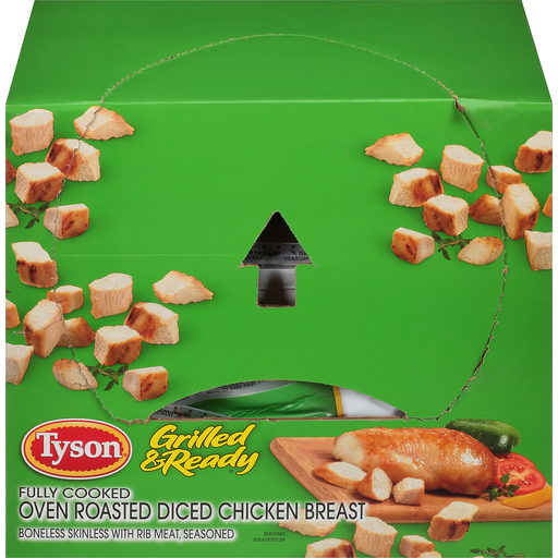 - The manufacturer of Oven Roasted Diced Chicken Breast is Tyson Grilled And Ready.