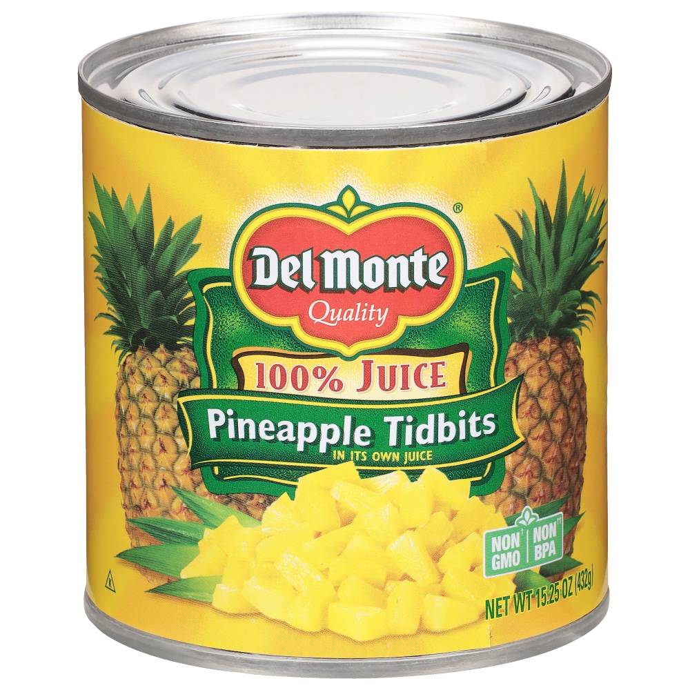 Del Monte® Pineapple Slices are picked and packed at the peak of ripeness. Featuring sliced pineapples in 100% juice, this delicious fruit is a tasty topping for yogurt, cereal, salads and more! Combine with your favorite flavored gelatin for a fun and festive treat. For a tasty dessert, top with crumbled chocolate cream-filled cookies. Also makes a colorful and refreshing fruit topping for ice cream or frozen yogurt! Picked and packed at the peak of ripenessPacked in 100% juiceNaturally fresh tastePerfect as a snack or side dish to any meal.