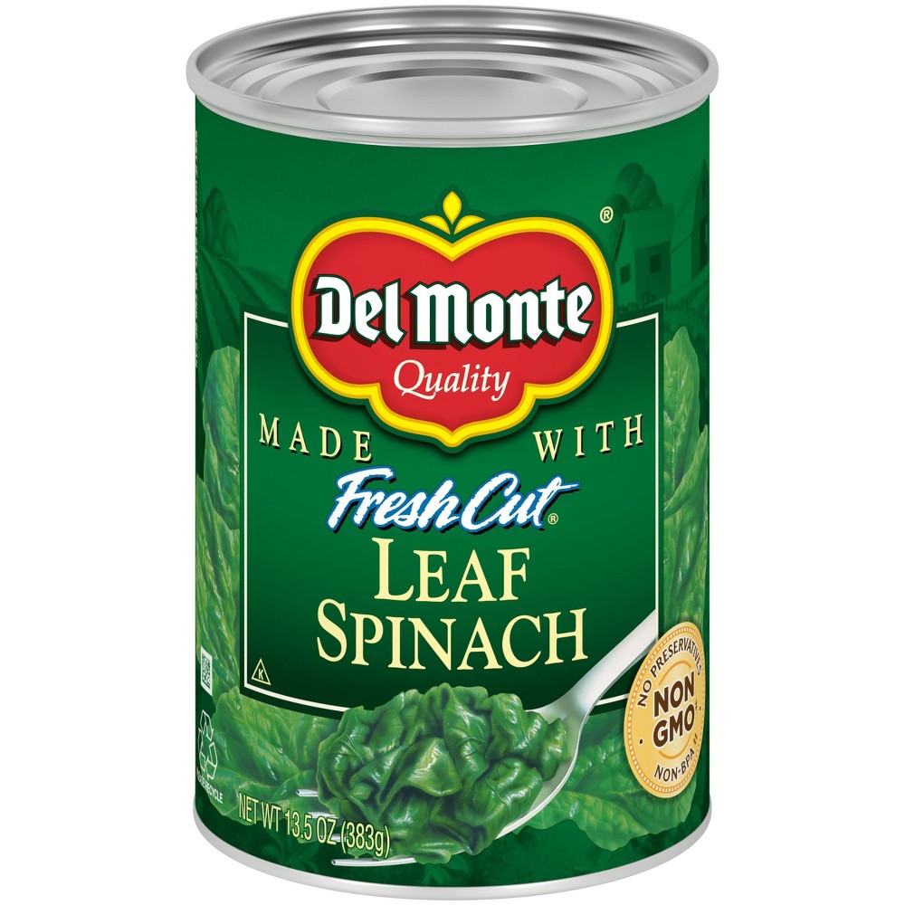 - The manufacturer of Leaf Spinach is Del Monte.