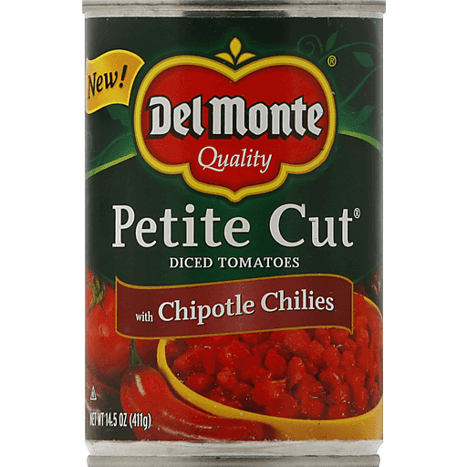 - The manufacturer of Petite Diced Tomatoes with Chipotle Chilies, Medium is Del Monte.