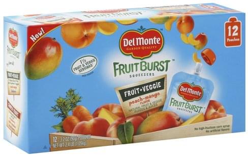 - The manufacturer of Del Monte, Fruit Burst, Squeezers, Peach, Mango, Peach, Mango is Del Monte.