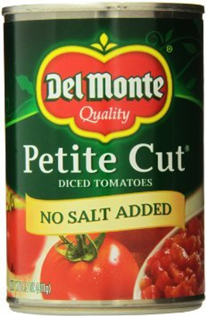 Del Monte® Petite Cut® Diced Tomatoes No Salt Added. Quality. No preservatives. Non GMO‡ Non-BPA‡. Please recycle. Our garden's best, to brighten your plate. Natural source of vitamin C, a powerful antioxidant. ‡‡Packaging produced without the intentional addition of BPA. Not a sodium-free food. ‡.