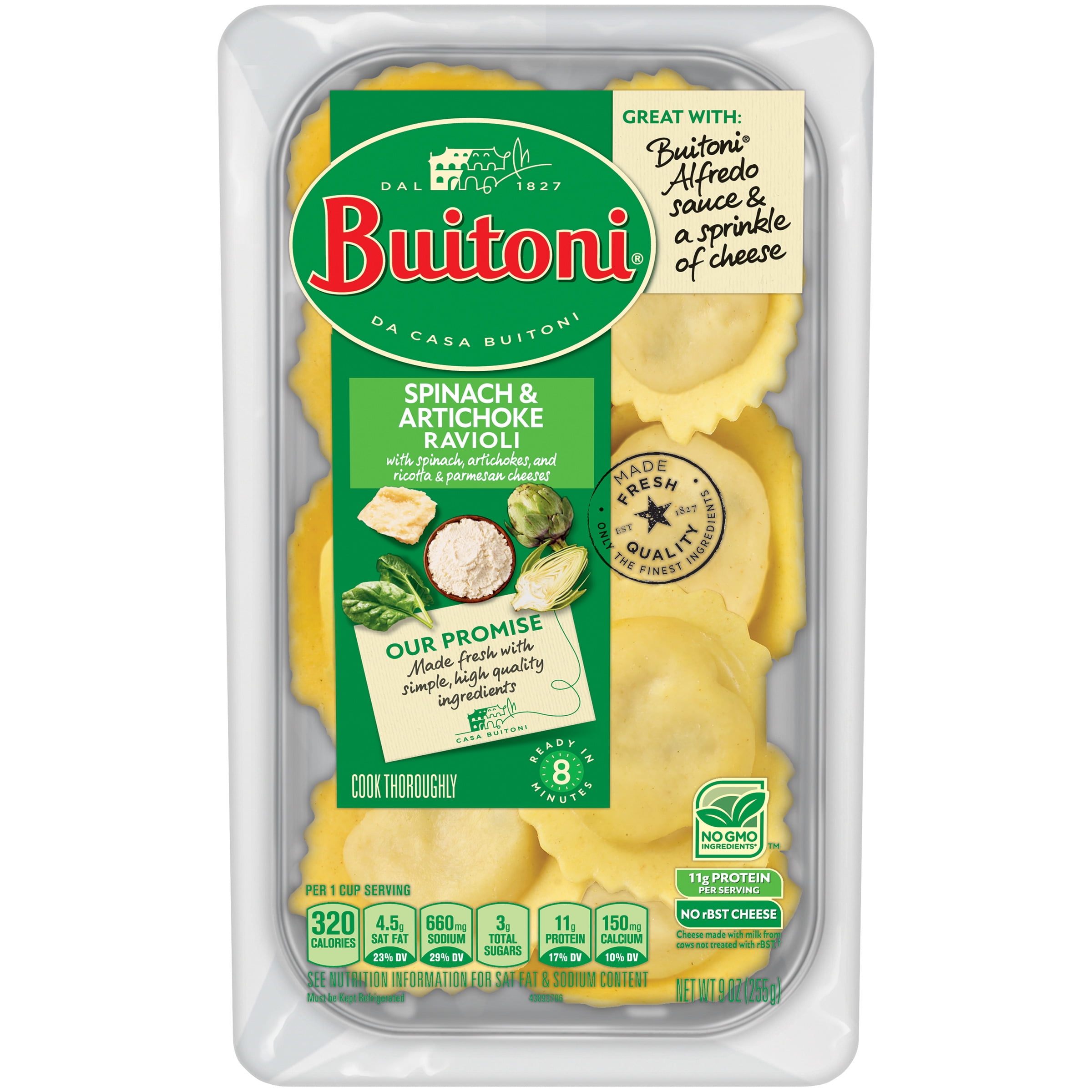 - The manufacturer of Spinach & Artichoke Ravioli with Spinach is Buitoni.