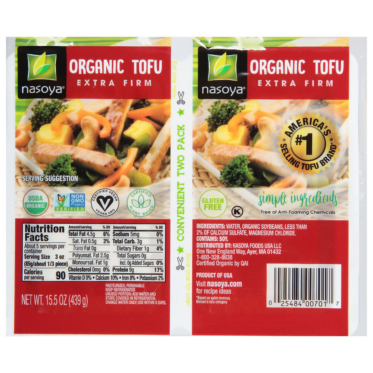 No.1 America's selling Tofu brand (based on sales revenue, Nielsen's tofu category). Simple ingredients. Free of anti-foaming chemicals. Eat one now. Save one for later. Convenient two pack.